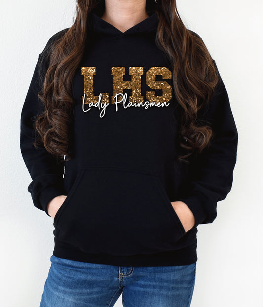 LHS Lady Plainsmen Faux Glitter Spirit Hoodie or Crewneck
