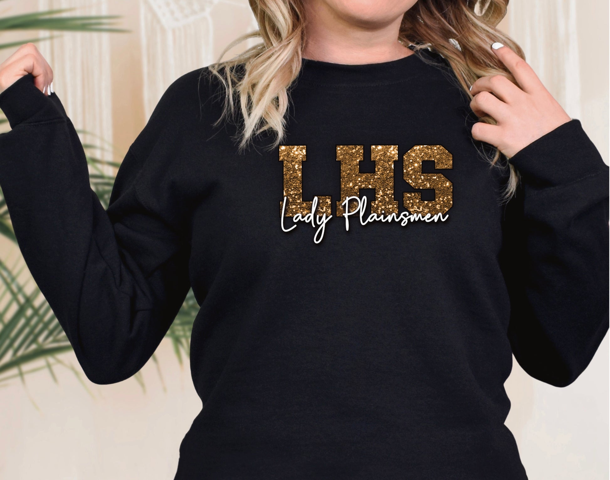 LHS Lady Plainsmen Faux Glitter Spirit Hoodie or Crewneck